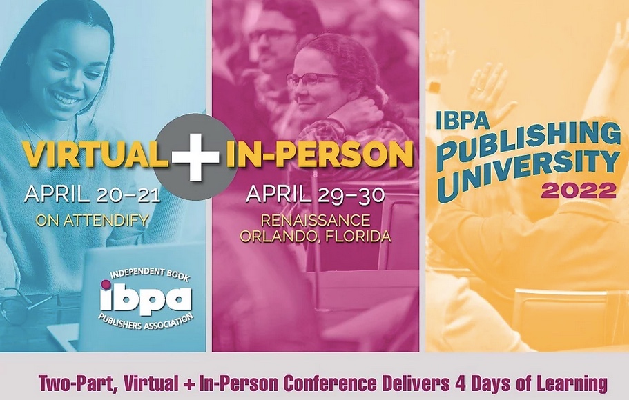 The 2022 Publishing University will include both virtual and in person events. Two days of virtual programming will be made available on April 20-21, 2022, with most of these virtual sessions recorded for attendees to view for one month following the conference. The IBPA Benjamin Franklin Award ceremony, workshops, and other gatherings will take place in person at the Renaissance Orlando in Florida on April 29-30, 2022. Organizers also are planning full day of field trips for Sunday, May 1, 2022. All in-person events will follow the most current Florida public health guidelines.
